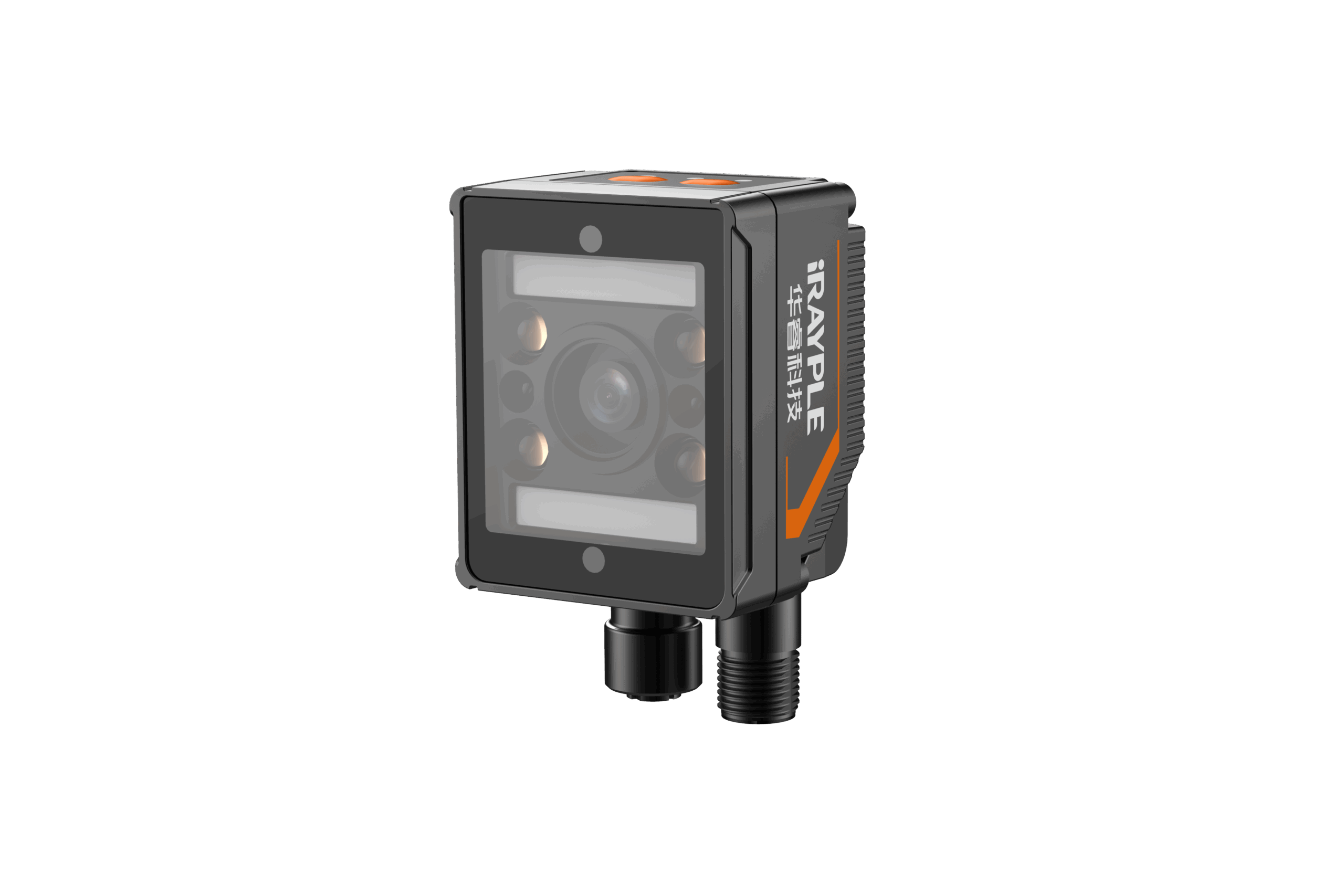 2 industrial M12 connectors, Ethernet and GPIO |